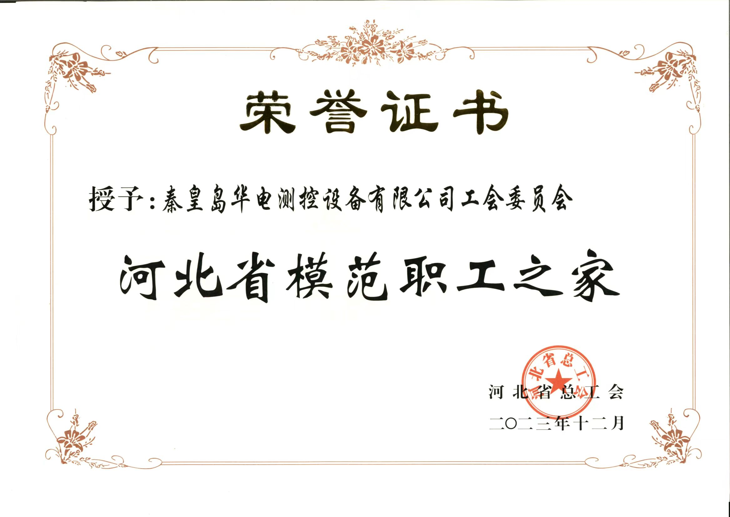 喜報:秦皇島華電測控設(shè)備有限公司工會委員會榮獲 河北省“模范職工之家”榮譽稱號